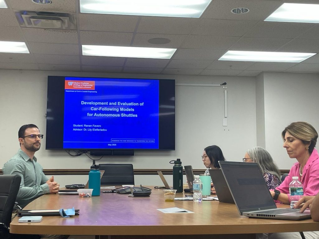 As a doctoral candidate at UF’s Engineering School of Sustainable Infrastructure & Environment (ESSIE), Favero’s research focuses on optimizing machine learning based models to simulate the driving behavior of autonomous shuttles, specifically their “car-following” behavior. During his doctoral studies, he has focused on gathering real-world data from these vehicles to find the answer to questions such as how they will perform in traffic alongside conventional vehicles.